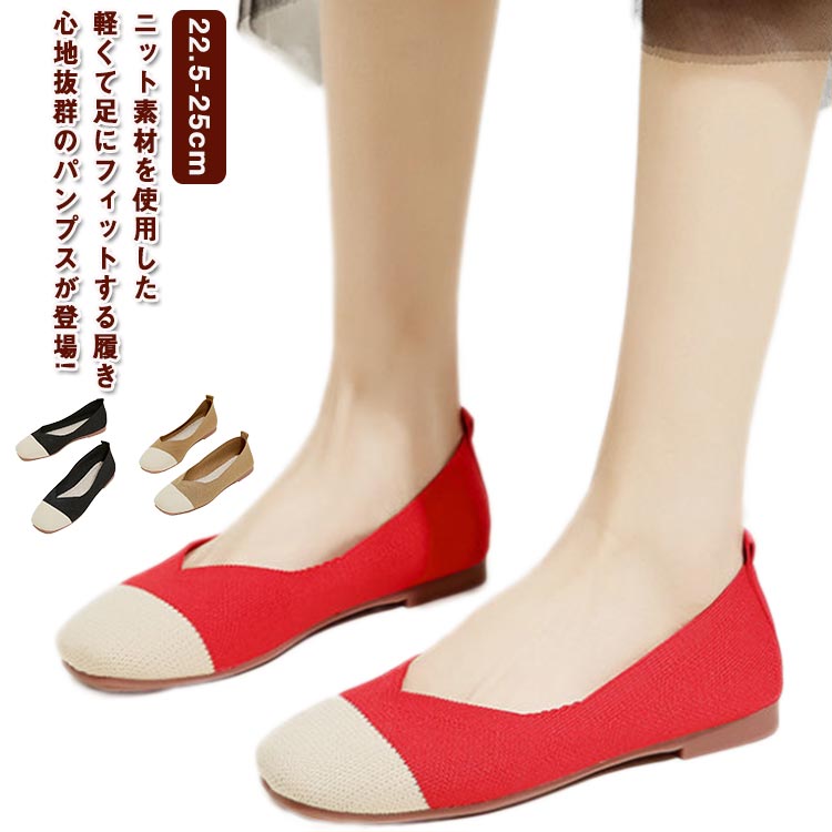 ニット パンプス フラット ローヒール スクエアトゥ 無地 春 夏 秋 シニア シューズ 30代 40代 50代 60代 おしゃれ