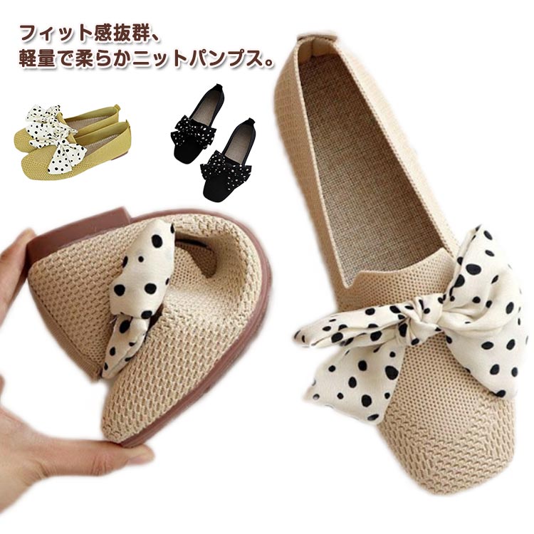 ニット パンプス フラット ローヒール スクエアトゥ ニットローファー リボン おしゃれ 春 夏 秋 レディース 靴 シューズ