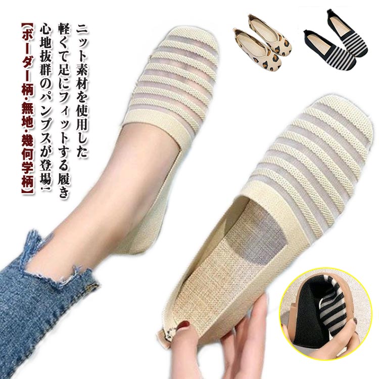 ニット パンプス ポインテッドトゥ ローヒール 春 夏 秋 無地 ヒョウ柄 ゼブラ柄 ストライプ柄 30代 40代 50代 60代