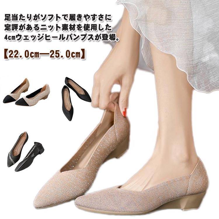 パンプス ニット ローヒール ストレッチ 春 夏 秋 冬 ニットパンプス 上品 高級感 韓国 ファッション 大きいサイズ