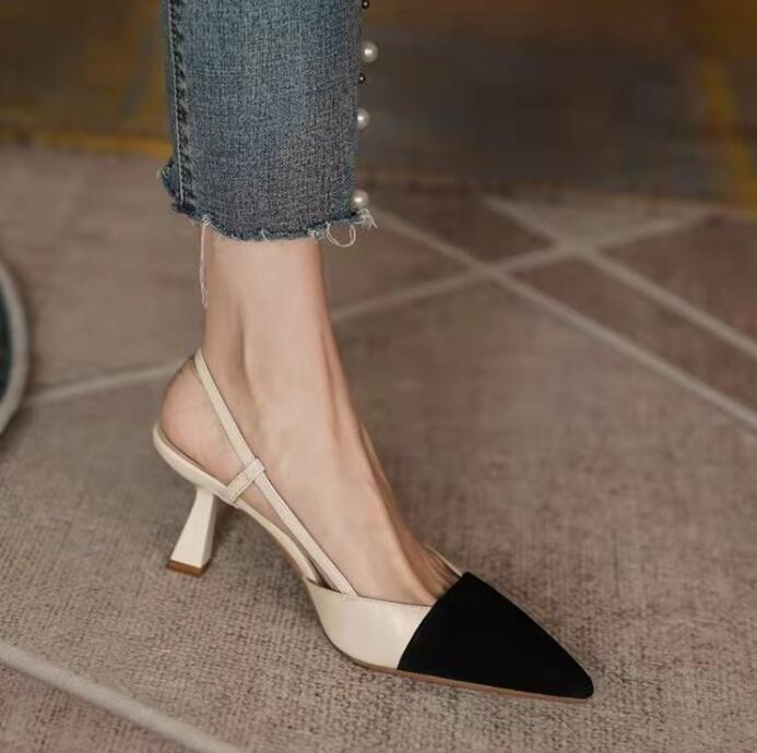 パンプス ポインテッドトゥ ローヒール パンプス ミュール PU バイカラー ストラップ 履きやすい 痛くない 歩きやすい ガーリー シンプル