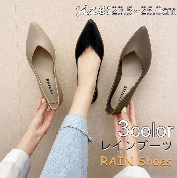 晴雨兼用 ヒール低め おしゃれ アウトドア 歩きやすい 雨靴 通勤 防水 ポインテッドトゥ パンプス パンプス レディース 痛くない レディース レインパンプス