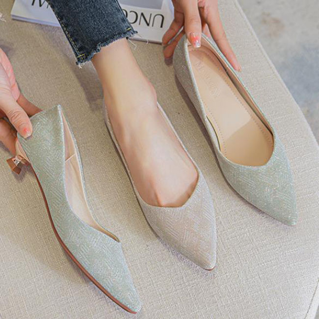 フラットシューズ レディース 痛くない パンプス 美脚 ポインテッドトゥ プレーン ベーシック きらきらラメ素材で華やかに 面接 オフィス OL 通勤 披露宴 謝恩会 2次会 ラインストーン 靴