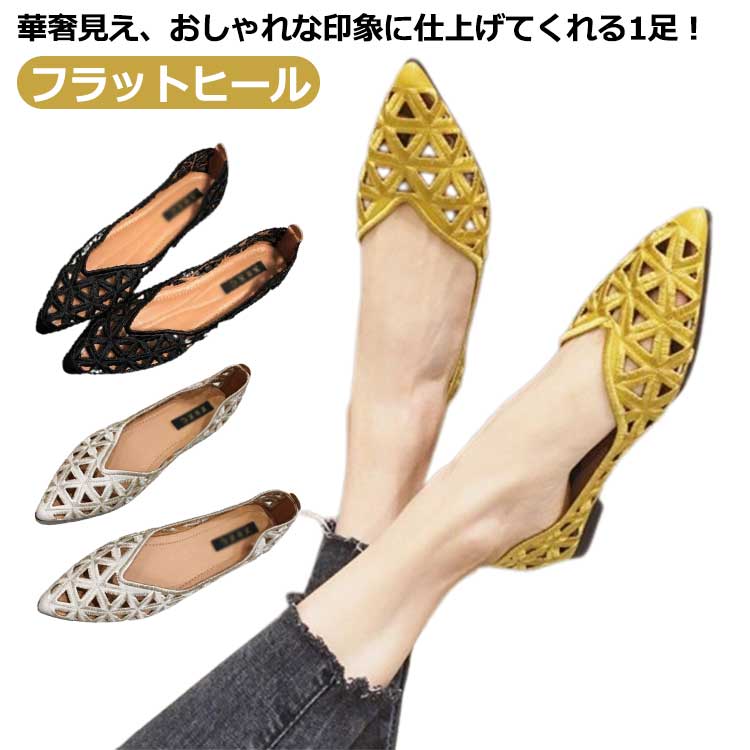 透かし フラットシューズ パンプス ローヒール パンプス ぺたんこ 痛くない 走れる フラットシューズ カットワーク 透け 透かし