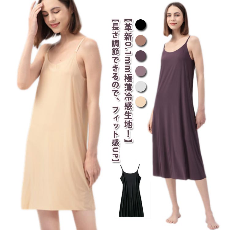 silk ひんやり冷感 0.1mm極薄ice きれいめ クールキャミスリップ インナー ワンピース キャミソールワンピース 重ね風 通勤 ノースリーブ
