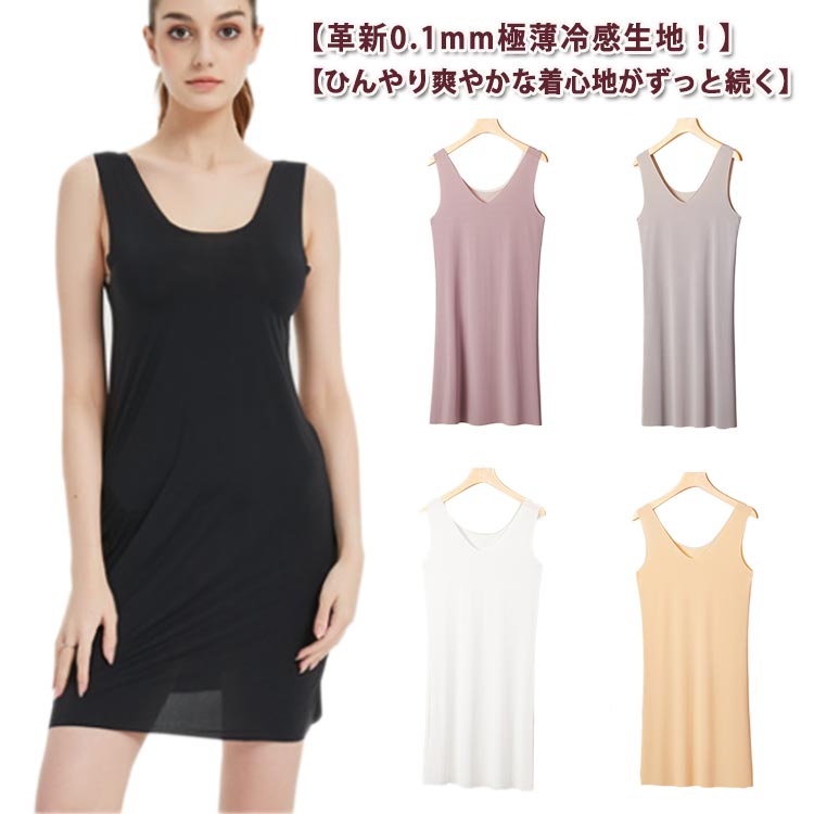 ひんやり冷感 0.1極薄 きれいめ クールキャミスリップ インナー ワンピース キャミソールワンピース 重ね風 通勤 ノースリーブ