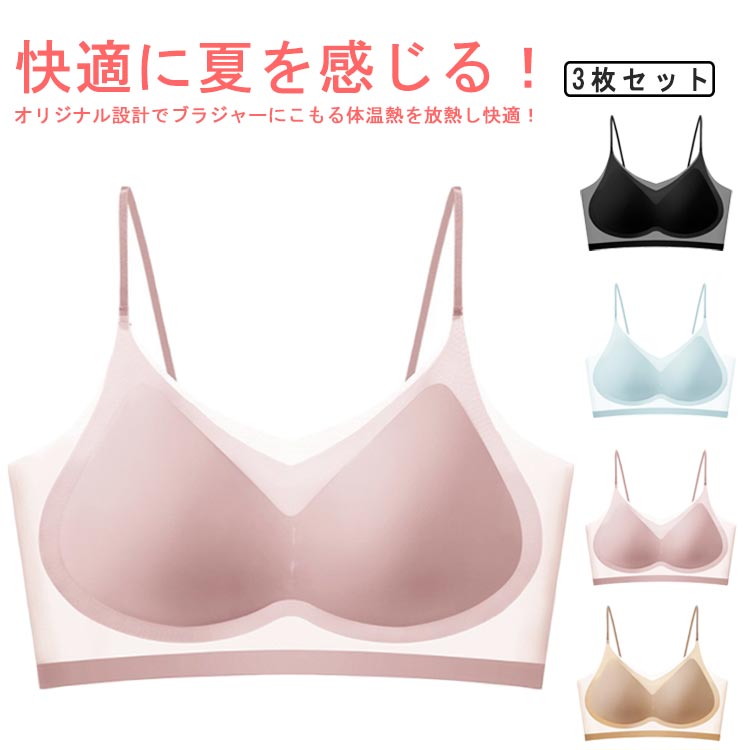 夏 ワイヤーなし ブラ 涼感 ノンワイヤー ブラジャー 3枚セット 極薄 ブラジャー 涼しい シームレス 冷感 接触冷感 夏用 シームレスブラジャー シームレス 冷感 インナー 接触冷感 涼しい ブラ