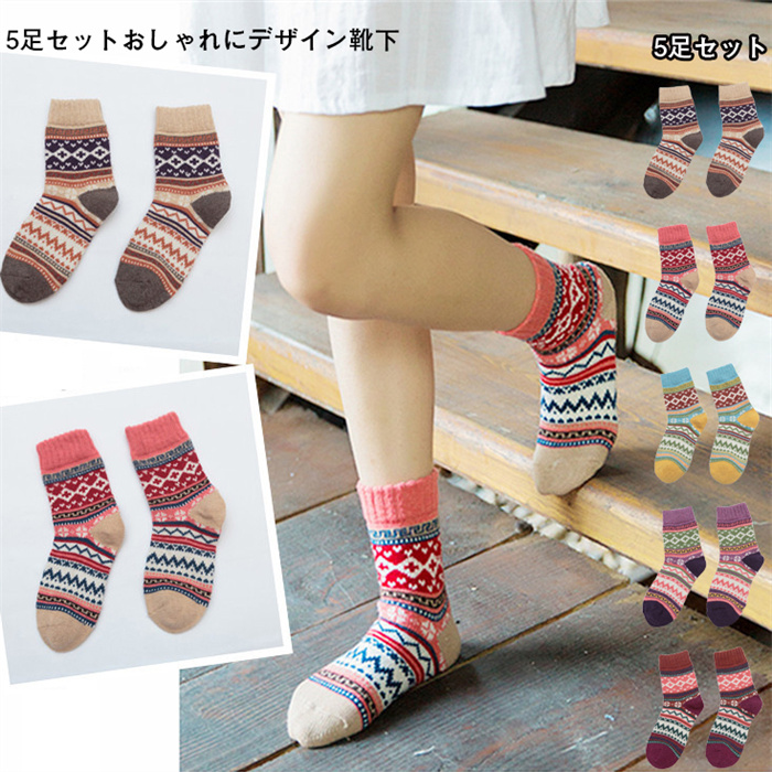 靴下 レディース 冬 ソックス 秋冬 防寒 厚手 暖かい あったか 女性用 5足セット カラフル 通気 伸縮性 履き心地 可愛い おしゃれ 登山 スポーツ