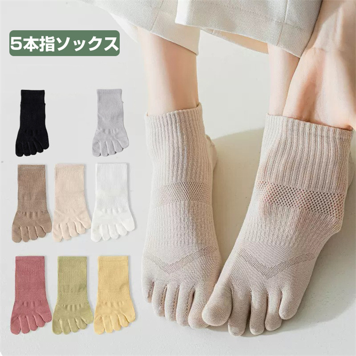 レディース 5本指ソックス スニーカー丈 5本指靴下 5足組 綿 通気防臭 丈夫 くるぶし 女性用 婦人 春夏秋 蒸れない メッシュ カジュアル スポーツ 五本指靴下 22-25cm