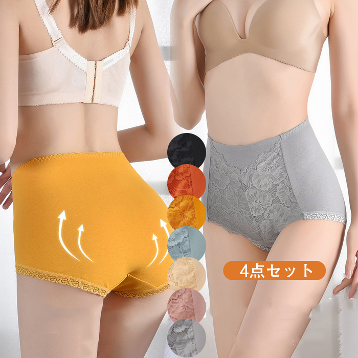 ショーツ 4枚セット スタンダードショーツ レディース 深め 綿 柔らか 吸汗 通気 お腹すっぽり 美尻 女性 下着 パンツ M-XL