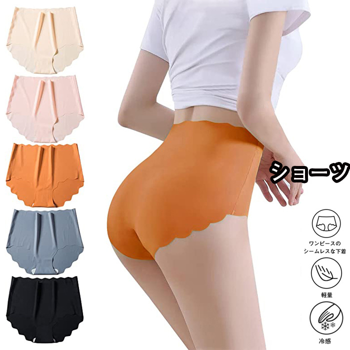 ショーツ レディース アイスシルク ハイウエストショーツ シームレスショーツ 冷感 無縫製 深め 5枚組 パンツ レディース 下着 美尻ショーツ すっぽりショーツ レギュラーショーツ