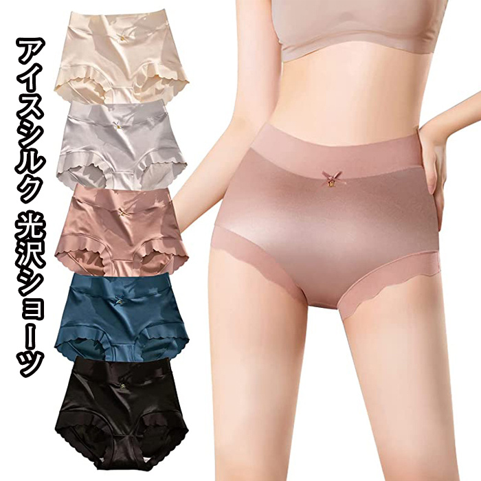 ショーツ レディース アイスシルク 光沢ショーツ ハイウエストショーツ サテン 下着 シームレスショーツ 冷感 5枚組 パンツ レディース 下着 美尻ショーツ すっぽりショーツ