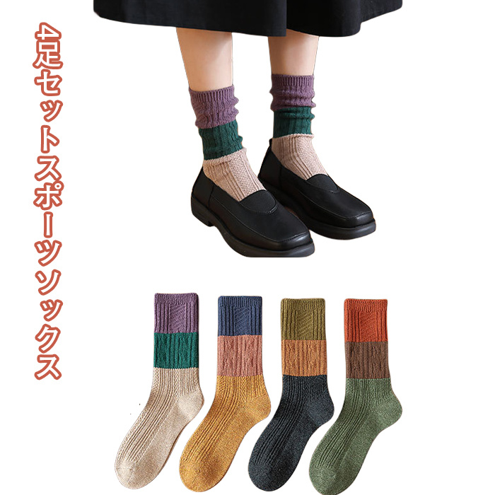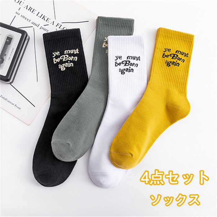 靴下 レディース 4足セットスポーツソックス 2024高級 綿 吸汗 防臭 カジュアル 可愛いソックス ハイソックス