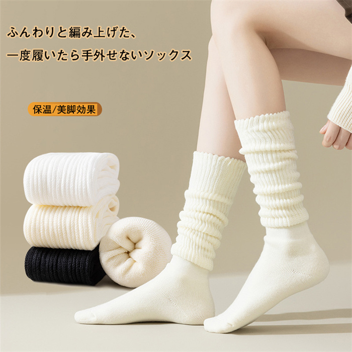 ルーズソックス レディース ハイソックス 靴下 おしゃれ カレッジ風 保温 あったかい 無地 ソックス ひざ下 スクールソックス