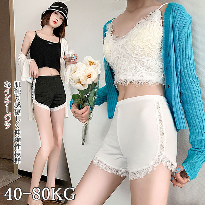 レディース シルク調 女の子 裾レース付き かわいいペチパンツ 無地 2色あり 見せパンインナー 下着 ナイトウェア レディース インナー 下着 ランジェリー タップパンツ