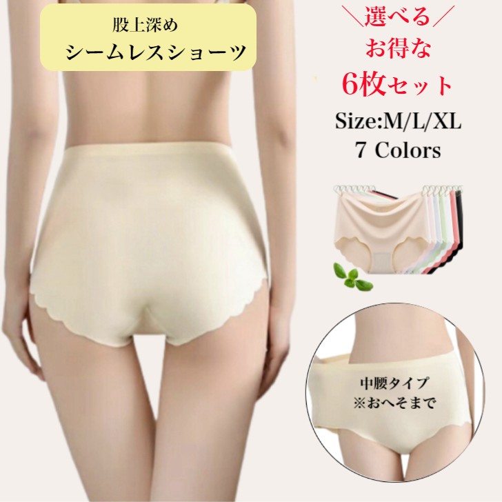 シームレスショーツ 6枚セット ハイウエストショーツ レディース シームレスパンツ 深ばきヒップアップ 引き締め 通気 無縫製 伸縮性 深め