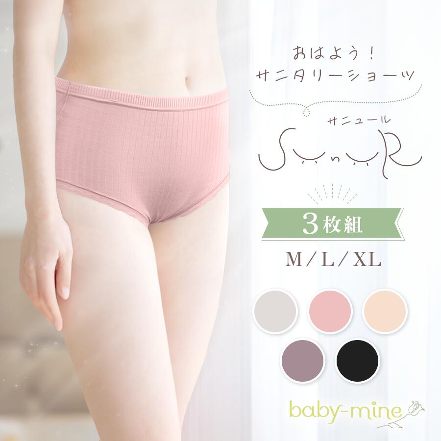 コットンだから敏感肌でも安心 おはよう サニタリーショーツ sunur 通気性抜群 かわいいくすみカラー3枚セット 生理の日でも朝はスッキリ目覚めたい DEAL