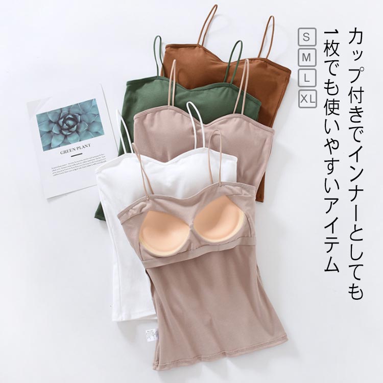 コットン キャミソール インナー パッド付 綿 カップ付き 締め付けない 女性 婦人 下着 肌着 ランジェリー