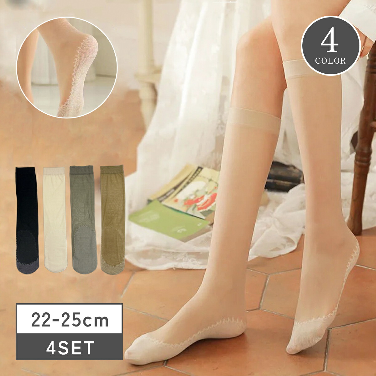 靴下 レディース ハイソックス シアー 薄手 ストッキング 蒸れにくい シンプル 美脚効果 滑り止め付き 008