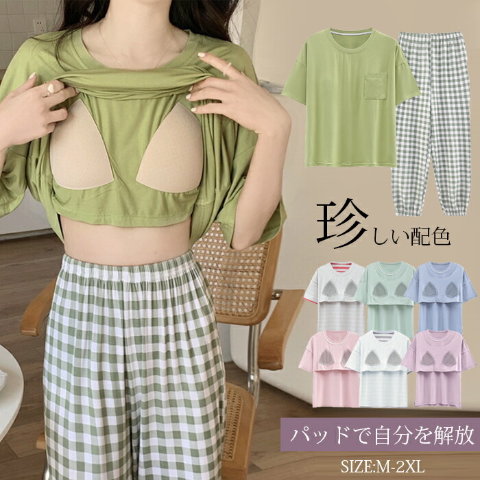 カップ付き 半袖 モデル冷感外出可能上下セット 柔らかな肌触りとゆったりとしたシルエットで着心地抜群です ♪