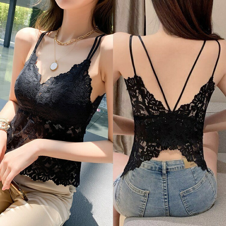 キャミソール ブラトップ レース インナー レディース カップ付き 薄手 花柄 タンクトップ 胸元カバー 春 夏 ブラ 下着 総レース 見せブラ ブラック ホワイト 快適