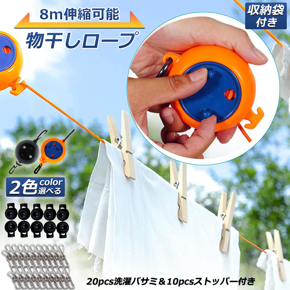 物干しロープ 物干し 洗濯 ナイロンロープ製 収納に便利 長さ調節可能 キャンプ用物干し 屋外 屋内用 最大8メートルまで 持ち運びやすい 防風 滑り止め 収納袋付き