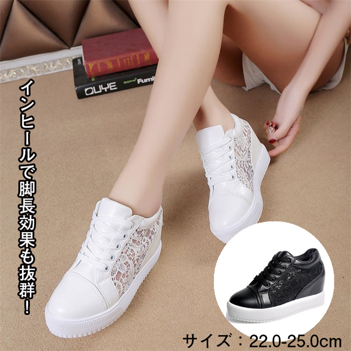 スニーカー レディース メッシュ 美脚 インヒール 厚底 かわいい 夏 夏用 大人可愛い シンプル おしゃれ 22.0-25.0