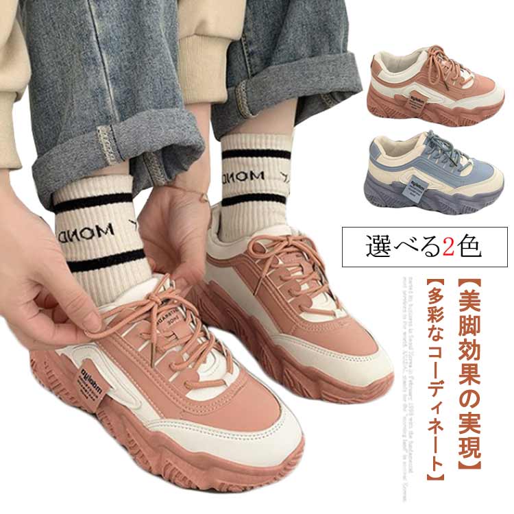 レディース スニーカー 厚底ソール 厚底ソール 紐結ぶタイプ 身長アップ ダッドスニーカー靴 レディース靴 スニーカー