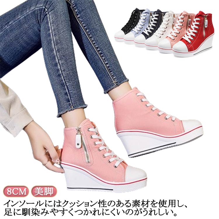 レディース スニーカー 厚底 黒 白 ハイヒール スニーカー キャンバス ハイカット スニーカーハイヒール
