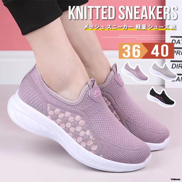 スリッポン レディース メッシュ スニーカー 軽量 シューズ 靴 ソックススニーカー ニットスニーカー すりっぽん ぺたんこ
