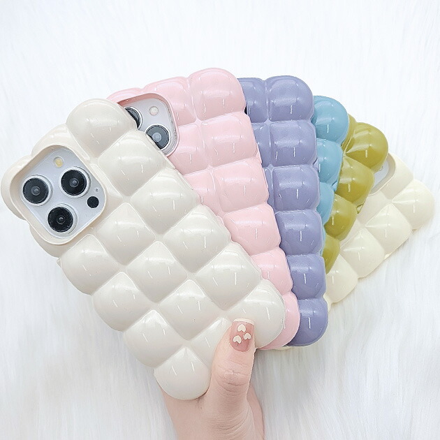 キャンディカラー ぽこぽこ 立体 iPhone ケース 女性 レディース スマホ カバー スクエア 光沢 3D TPU プラスチック ポリウレタン樹脂 カジュアル スポーティ 耐水 耐衝撃 ポップ 可