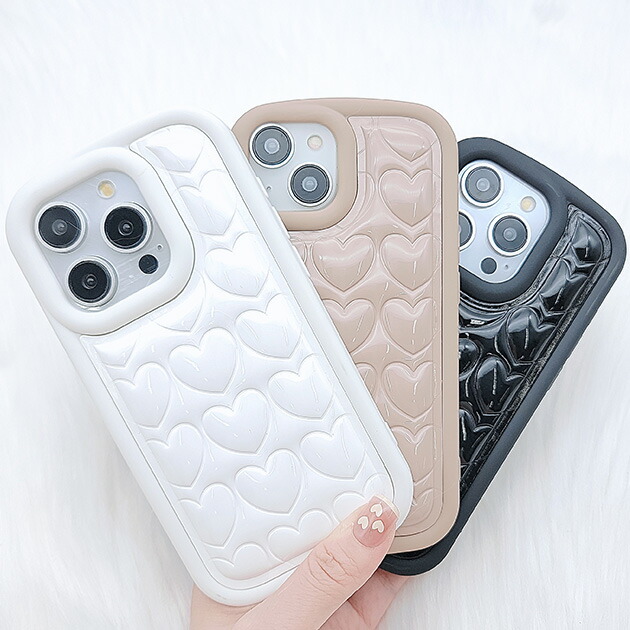 3D ハート ソフト iPhone ケース 女性 レディース スマホ カバー 光沢 TPU プラスチック ポリウレタン樹脂 カジュアル スポーティ 耐水 耐衝撃 ポップ 可愛い キュート カラフル ガ