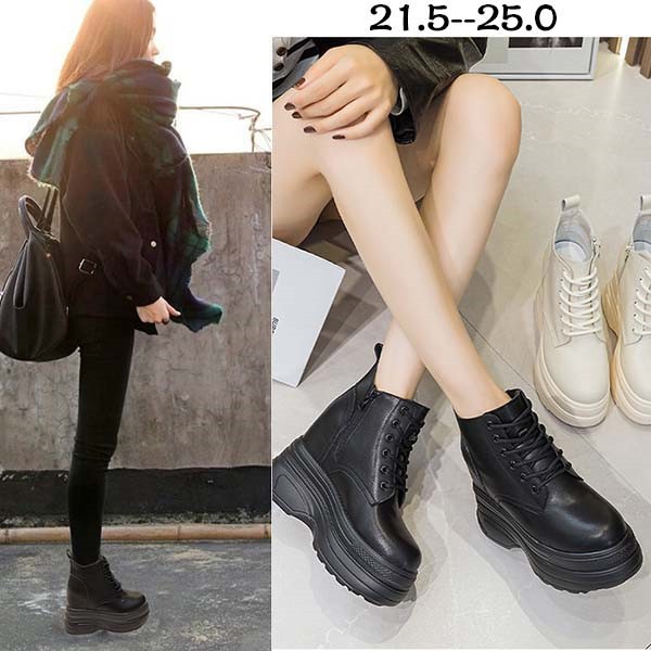 ショートブーツ レディース 厚底 ローヒール 編上げタイプ 歩きやすい 痛くない ヒール7センチ靴 レディース靴 ブーツ サイドゴア