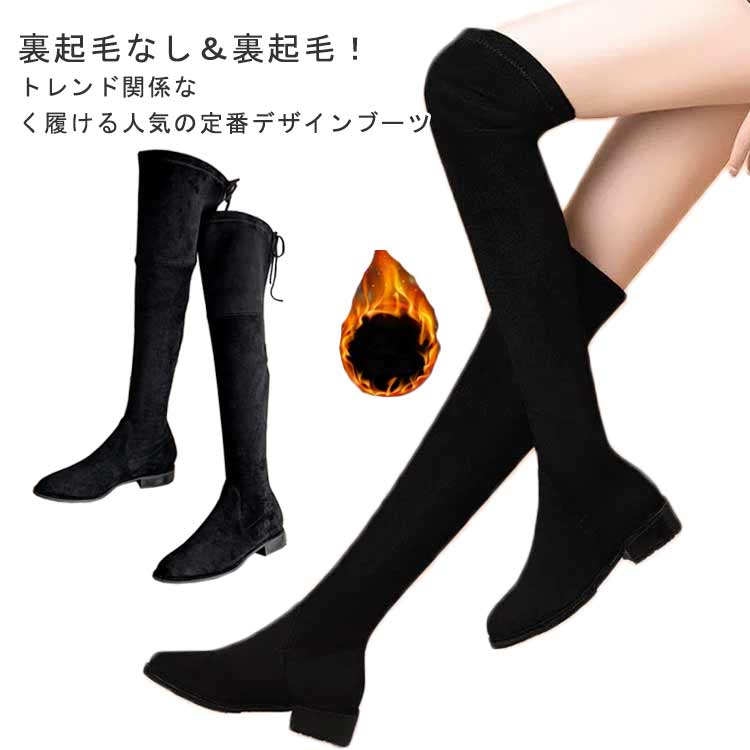 ブーツ ニーハイ ニーハイブーツ ロングブーツ ローヒール おしゃれ 女性 大きいサイズ 黒 レディースブーツ ロング シンプル