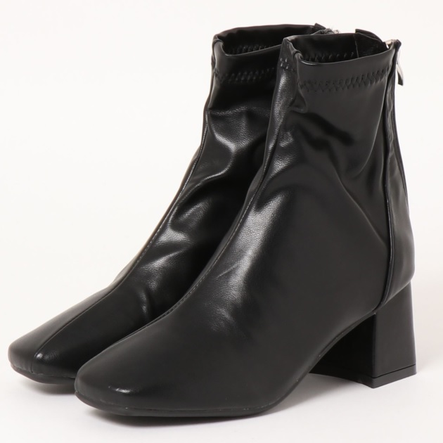 ショートブーツ レディース スクエアトゥ 8ヒール ブーティ サイドファスナー 歩きやすい ヒール 痛くない 疲れにくい ショート丈 秋 冬