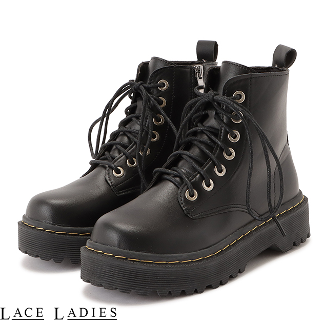 2 厚底 レースアップブーツ レザー ジップアップブーツ ショートブーツ 編み上げ レディース 春 秋 冬 美脚 脚長 ボリュームソール カジュアル ストリート ボーイッシュ フェミニン ガ
