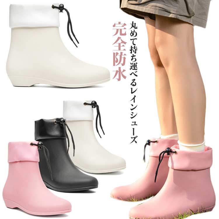 折りたたみ レインブーツ レディース ショートブーツ 長靴 完全防水 防水靴 レディース靴 レインシューズ 長靴 ブーツ 長靴
