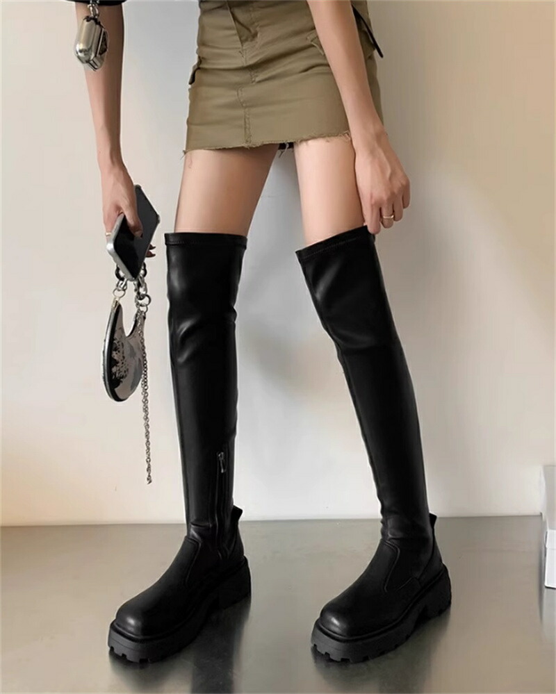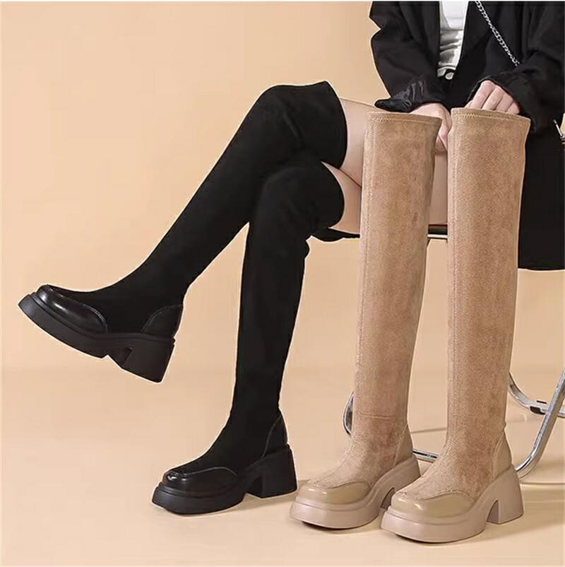 レディースブーツニーハイストレッチ素材ロングブーツ厚底靴 レディース靴 ブーツ その他