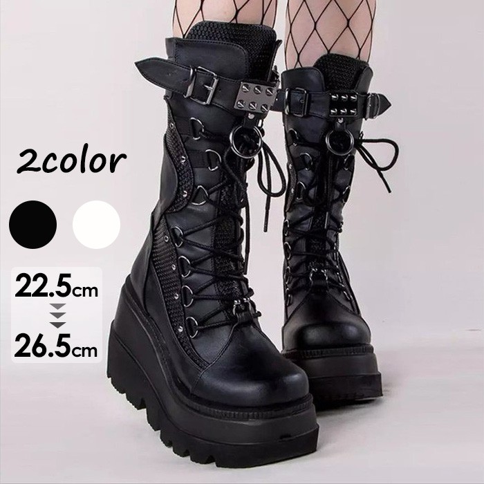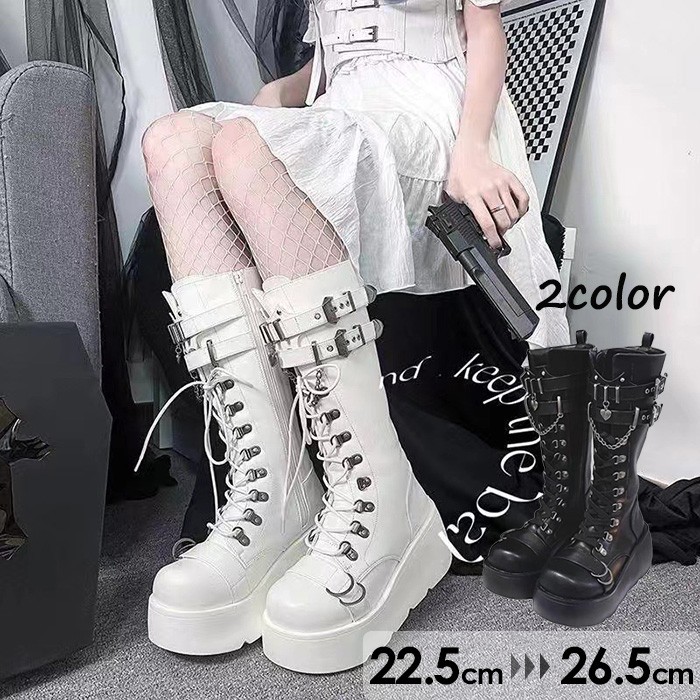 厚底 ブーツ レディース バックルストラップ ハイブーツ パンク ロリータ風 lolita パンプス