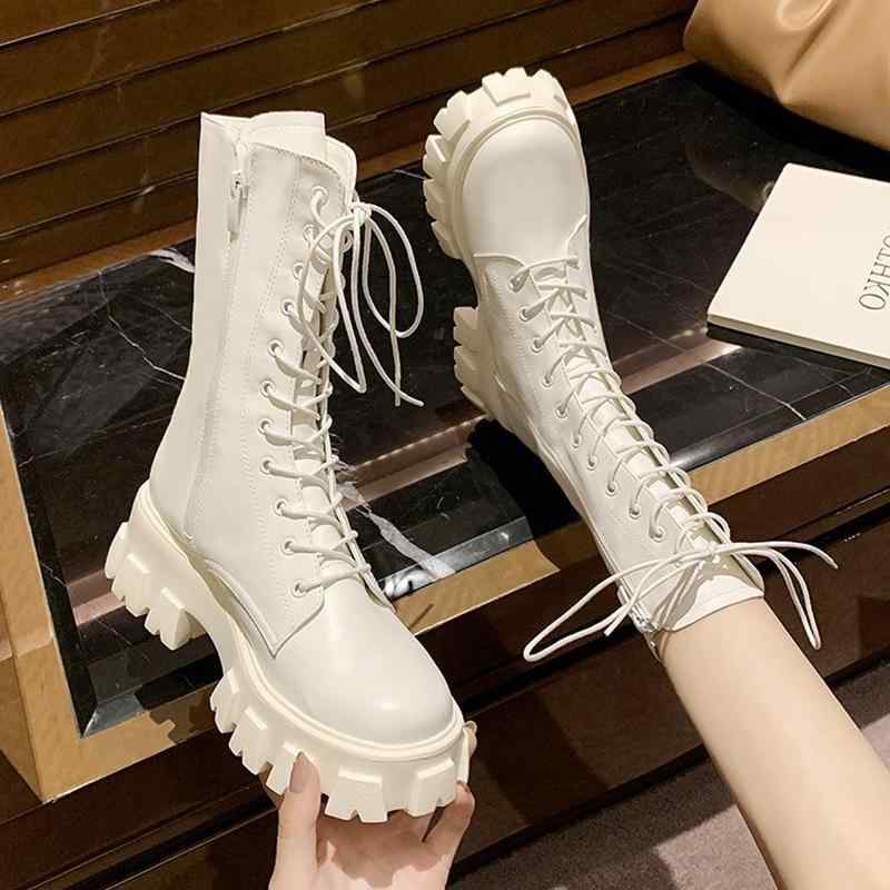 韓国 靴 シューズ 春夏 秋冬 レディース かわいい おしゃれ 小高 身長 アップ ブーツ 英国風 ハイ カット レディースシューズ 春 秋 厚 シングル ブーツ ホワイト ミッド カーフ ブーツ