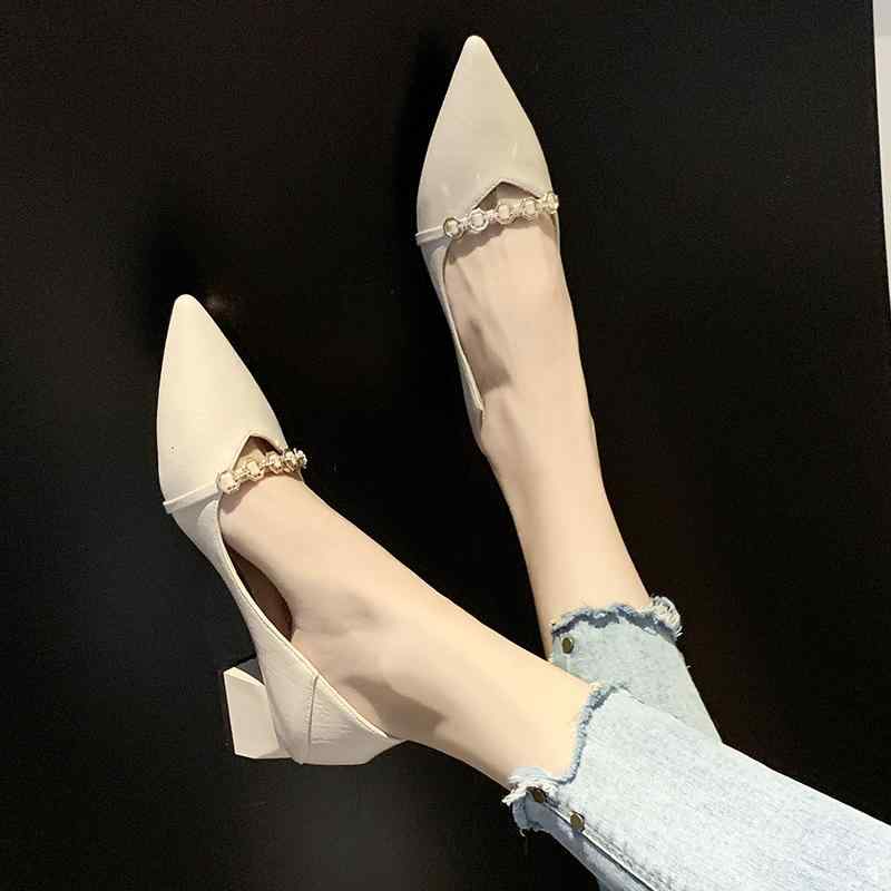 韓国 靴 シューズ 春夏 秋冬 レディース かわいい おしゃれ 太ヒール 女性用 シングル シューズ 春 秋 スタイル フレンチ パール スクエアバックル ソフトレザー ミッド ヒール 靴