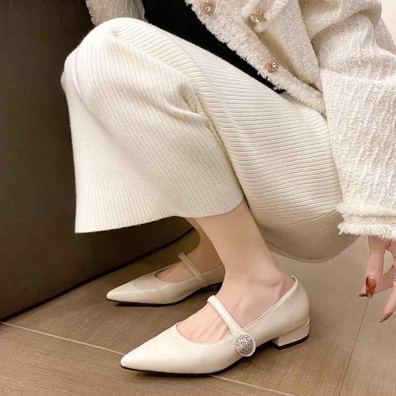 韓国 靴 シューズ 春夏 秋冬 レディース かわいい おしゃれ フレンチ ポインテッドトゥ 太ヒール シングル シューズ 女性用 一文字 ローヒール ラインストーン レトロ メリージェーン 靴