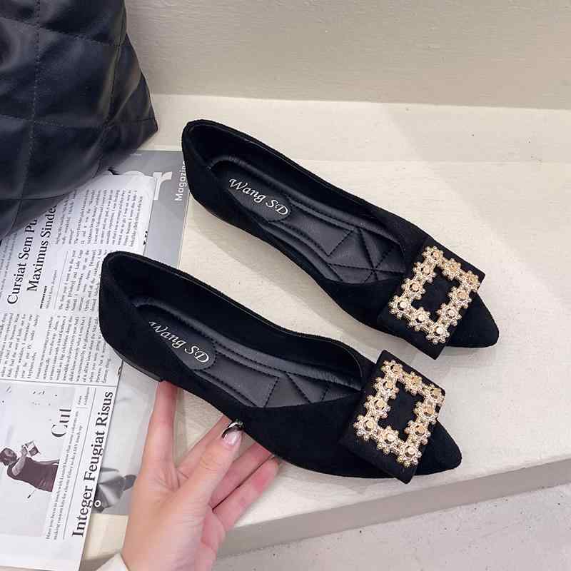 韓国 靴 シューズ 春夏 秋冬 レディース かわいい おしゃれ 春 秋 スエード ブラック ワーク フラット シューズ 女性用 ポインテッドトゥ ファッション ビーニー シューズ