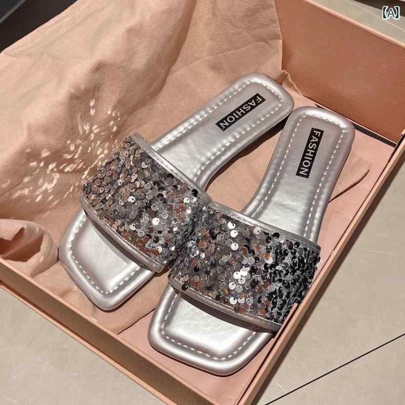 韓国 靴 シューズ 春夏 秋冬 レディース かわいい おしゃれ の スパンコール フェアリー 靴 フラット ビーチ サンダル 外出用 ブラック 夏 スリッパ フラット ビーチ サンダル