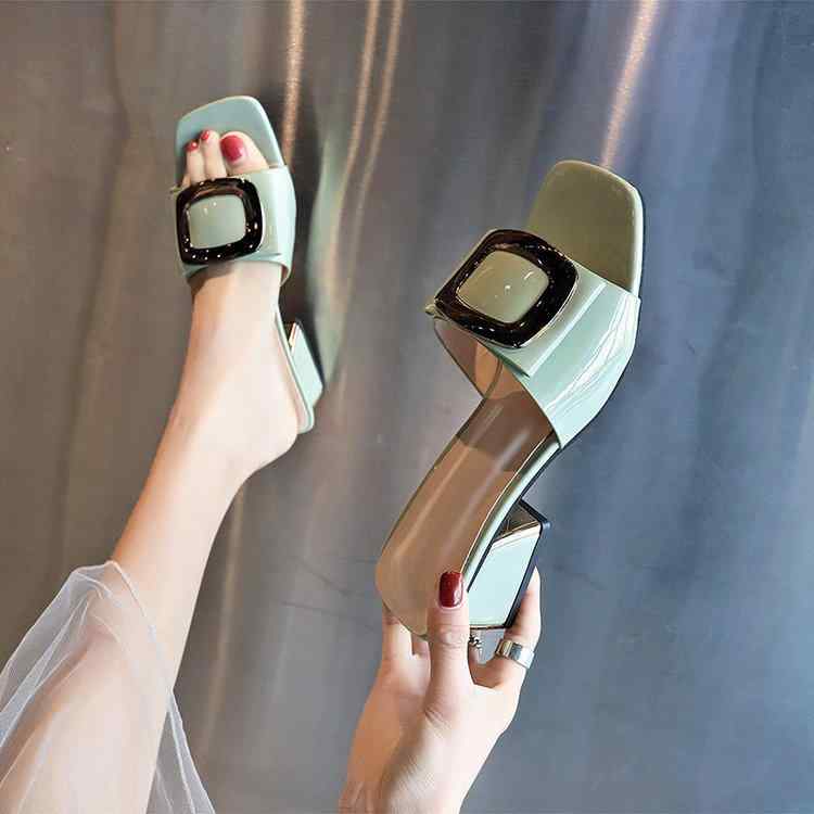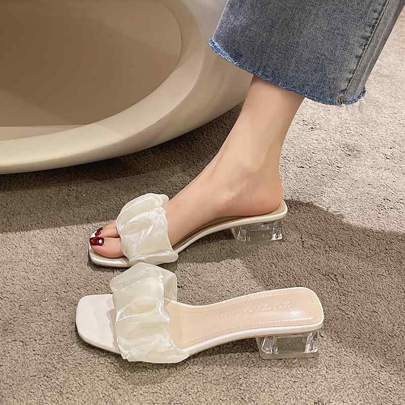 韓国 靴 シューズ 春夏 秋冬 レディース かわいい おしゃれ ハイヒール サンダル 女性用 夏 アウターウェア ファッション ミドル ヒール 太ヒール フェアリー フレッシュ スリッパ イン