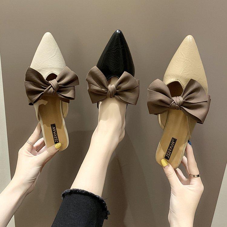 韓国 靴 シューズ 春夏 秋冬 レディース かわいい おしゃれ 包頭 ハーフ スリッパ 夏 弓 ミドル ヒール 尖った フェアリー サンダル スリッパ