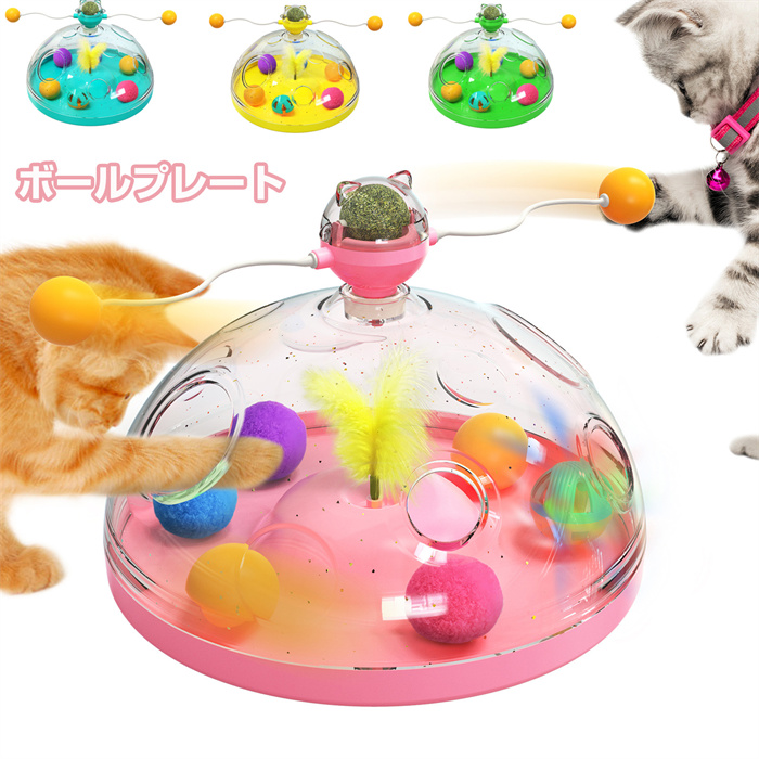 猫 おもちゃ ボールプレート 猫じゃらし ひとり遊び 多機能 くるくる ボール 玩具 ストレス解消 電池不要 猫用 ペット用品 耐久 遊び道具 運動 ダイエット 運動不足