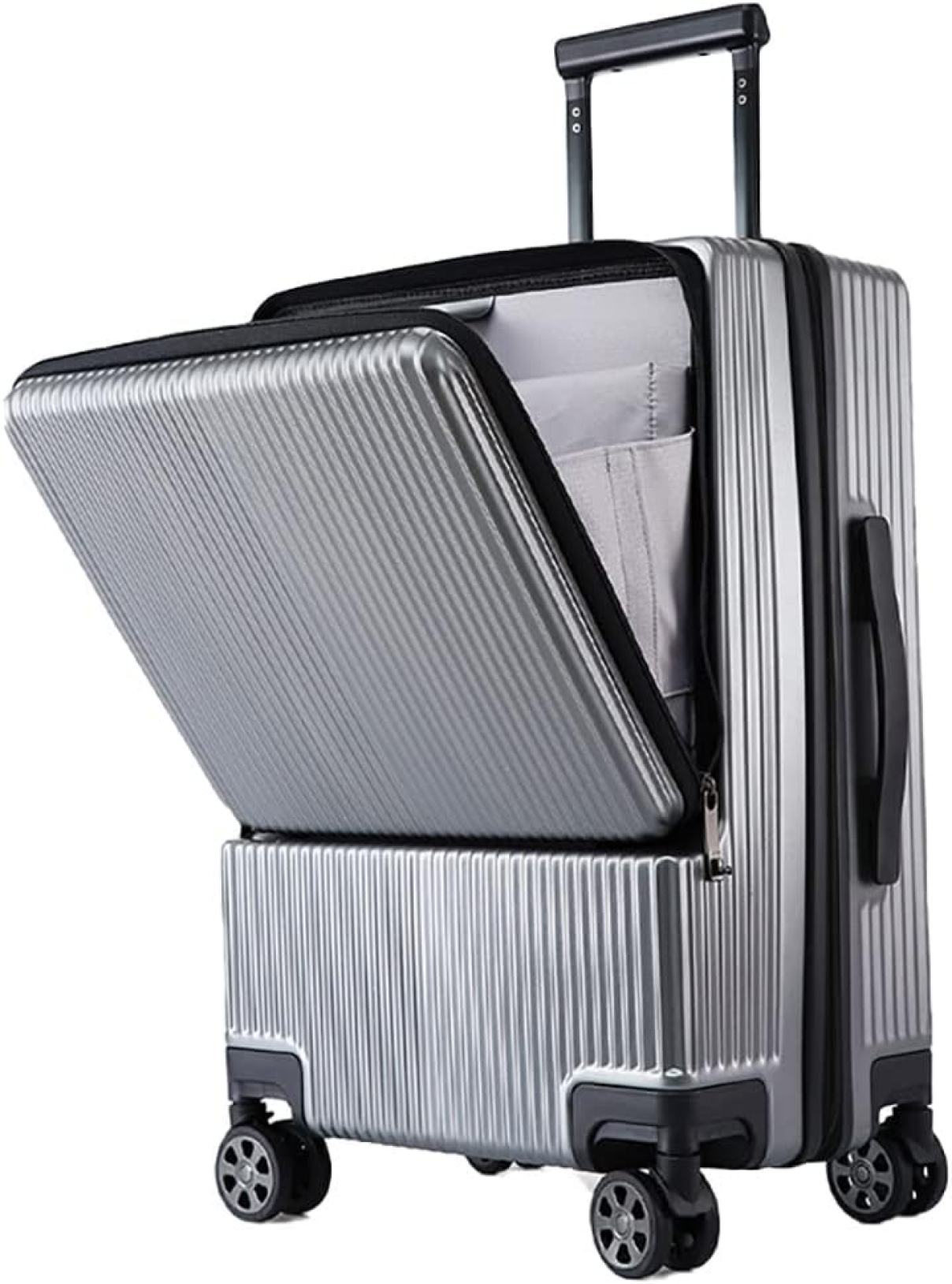 スーツケース 前ポケット ポート付き 機内持込 フロントオープン 超軽量 フロントポケット キャリーバッグ トップオープン 多収納ポケット ファスナー 静音 小型 ロック付 旅行前開きオー