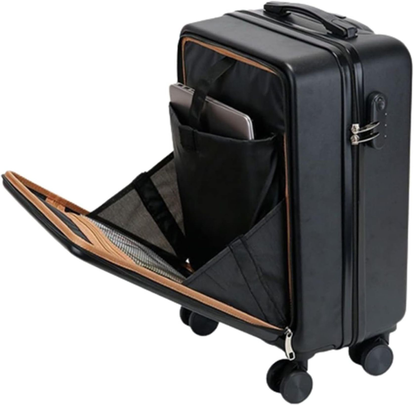 スーツケース 前ポケット ポート付き 機内持込 フロントオープン 超軽量 フロントポケット キャリーバッグ トップオープン 多収納ポケット ファスナー 静音 小型 旅行出張 ロック付 前開