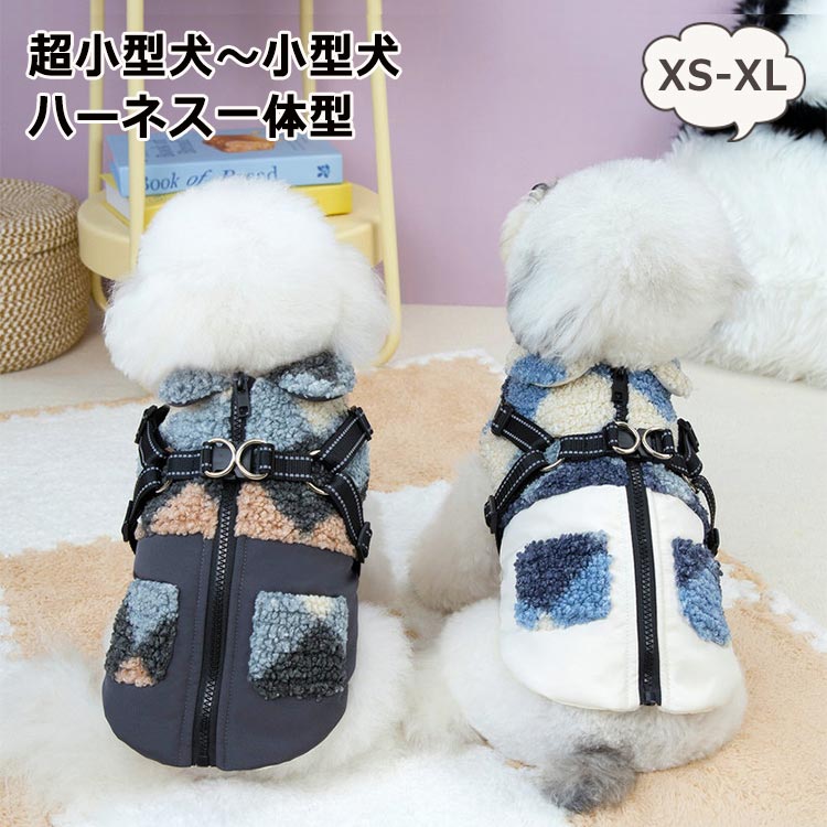 犬服 犬 服 ハーネス一体型 コート ジャケット ドッグウェア 寒さ対策 お出かけ お散歩 XL S M L XL